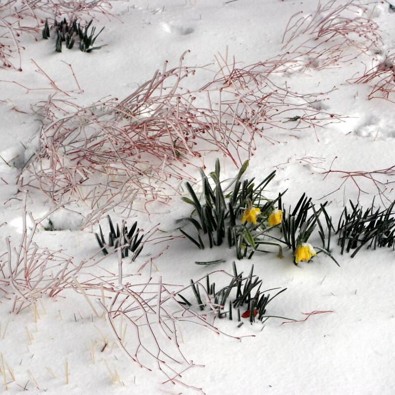 Narcissus bulbs are like bears: they go dormant in winter. They need weeks or months of cold temperatures to prepare them to grow. When spring sunlight starts to warm them, they’ll emerge from their sleep.