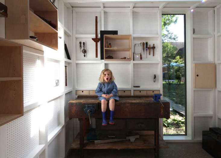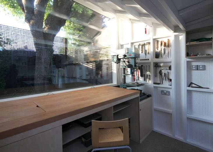 The garden workshop is one of two sheds Davidson built in his garden; the second building is a home office.
