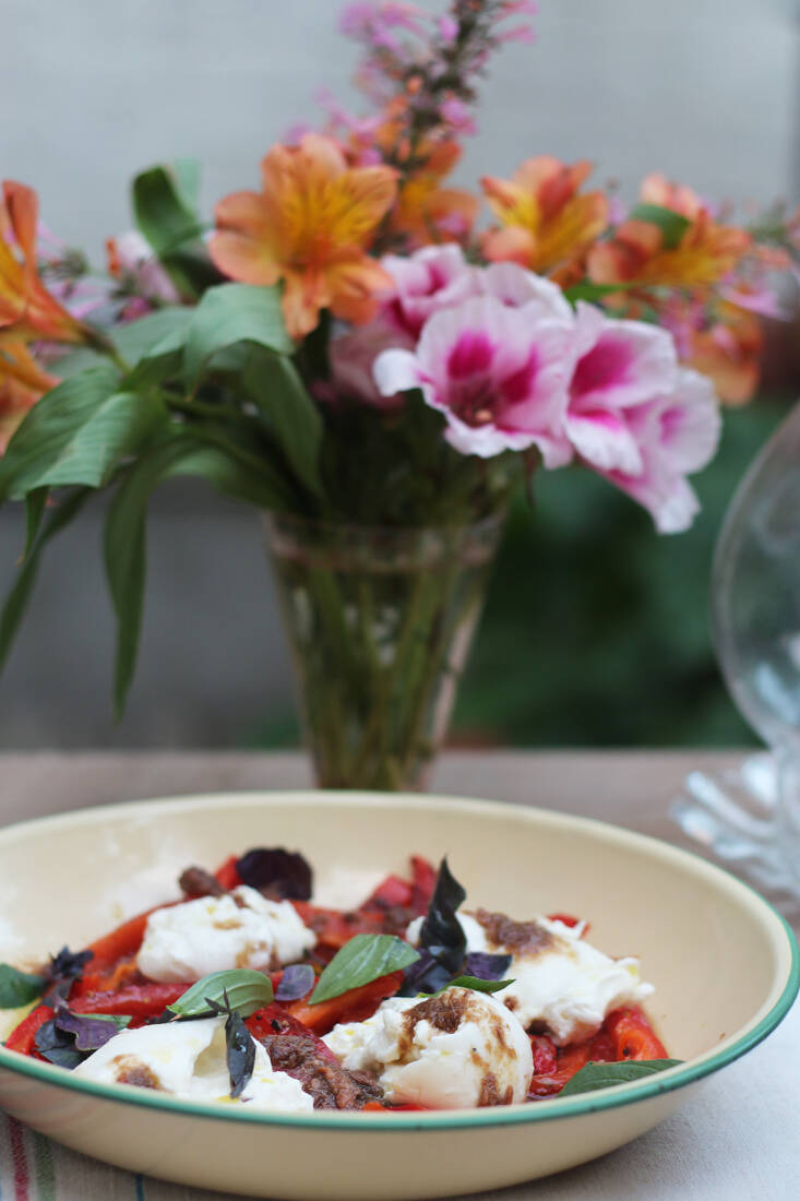 Labor Day is behind us. Summer, the official version, is over. Just don’t tell the basil. It’s still going strong, at farmers’ markets and in the pots on my terrace. If I could choose just one flavor to extend the longest, brightest days of the year, this would be it. The evocative, familiar fragrance of the soft herb is the embodiment of summer, but shorter days do not spell its end. Now, if there is one constant to my menus, it is an ever-evolving riff on a famous salad that basil defines: the caprese. These last salads of the season may feature the traditional mozzarella, but I often use creamier burrata, and sometimes heretical feta. But there is always basil. Sweet green, purple, tiny, or Thai.