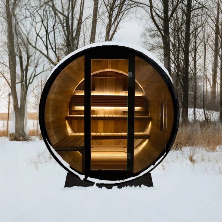 Above: From Plunge, the Sauna Mini is an ultra compact outdoor (or indoor) sauna made of weatherproof cedar and is made to sync with a smartphone; $9,990 at Plunge. Above: The Sun Home Sauna Outdoor Cedar Barrel Sauna is made from sustainable Canadian Wester Red Cedar and is designed with panoramic views and is heated with a Huum DROP electric heater; $15,299 for the 4-person size. Above: The Tiny Modern Outdoor Sauna Kit Allure XS is available with wood-burning or electric heater; prices start at $7,990 at BZB Cabins and Outdoors. Above: Another sauna for UK readers, the Sauna Craft Homegrown Sauna is made from wood sourced from Somerset, Wiltshire, and Dorset. It’s heated with a Harvia M3 wood-burning stove; £24,000 at Sauna Craft.