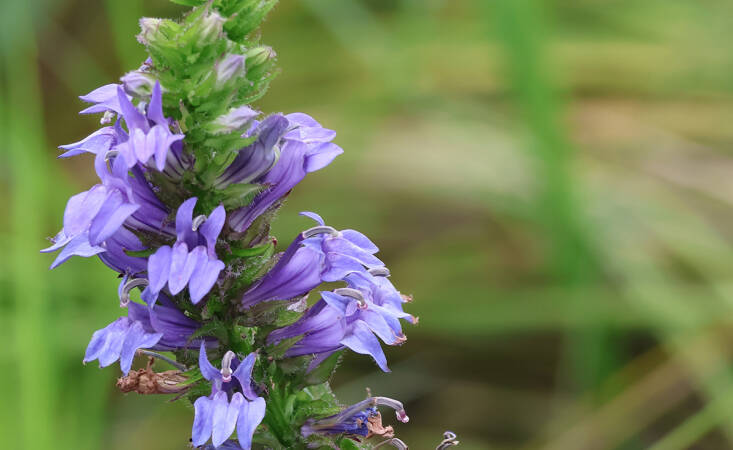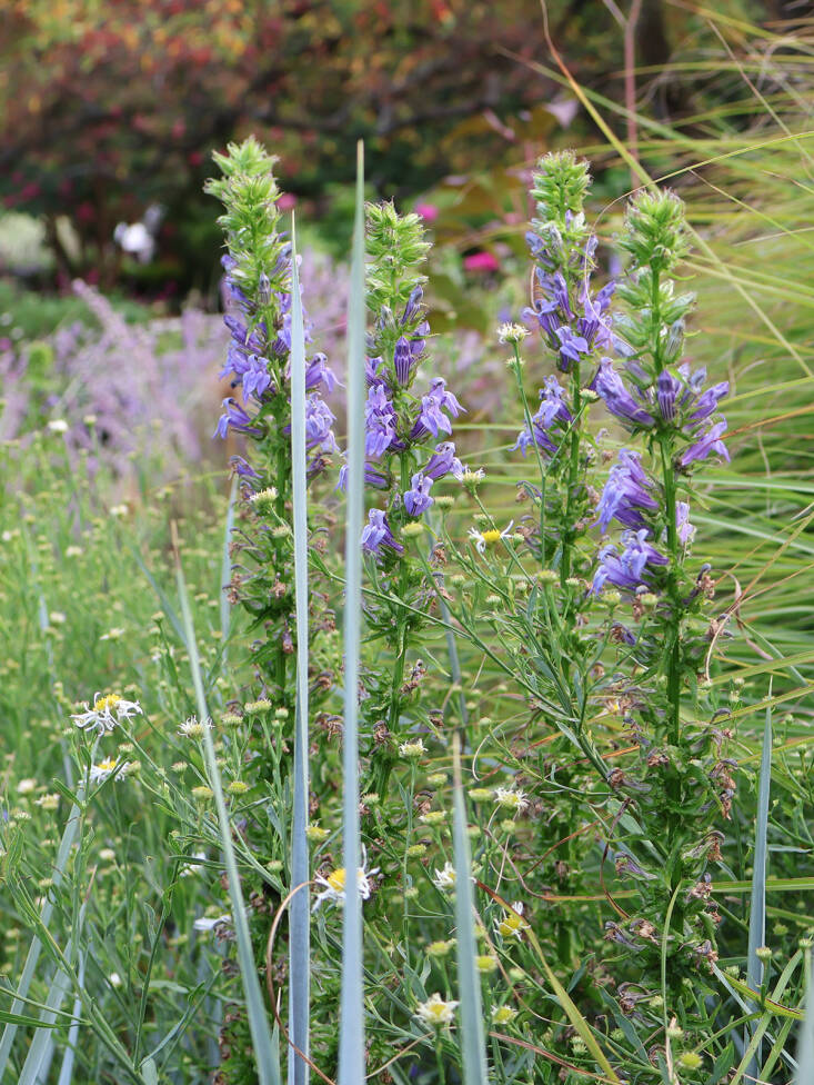 Blue cardinal flower, also known as great blue lobelia, is a tall native perennial that blooms for long weeks at the end of summer. Like its striking cousin, the red cardinal flower, this lobelia relishes plenty of water and is happy growing in full-sun rain gardens, bogs, and damp meadows. But it will also grow successfully without supplemental water in semi-shaded flower borders if its roots remain cool and mulched. Blue cardinal flower brings vertical interest to the garden and is a vividly blue counterpoint to the colors of late summer and early autumn.
