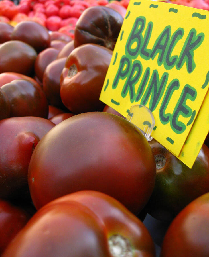 You know those giant heirloom tomatoes that cost a small fortune? A meal for one in sweltering heat is the time to indulge. They also make a surprising and satisfying entrée for a party. Cut out their tough stem-base, slice off their caps (rub those across garlicky toast, for an appetizer), salt them, then add torn-up pieces of softer mozzarella. Shower the creamy cheese with a thunderstorm of fresh herbs, where basil leads the way. In the version above I have added tender and aromatic summer savory. Drizzle with a peppery extra virgin olive oil, and season with more freshly ground black pepper.