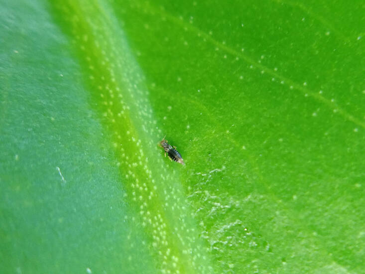 Thrips are one of the most pernicious of indoor plant pests and plagued Darryl’s indoor collection so much over a three-year period that he had to discard some of his plants. They eat plant tissue, leaving scratch-like silvery marks, leading to dead leaves. What can make thrips very hard to control is that “their eggs are inside the plant tissue,” he says, rather than on it, “making spraying useless.”