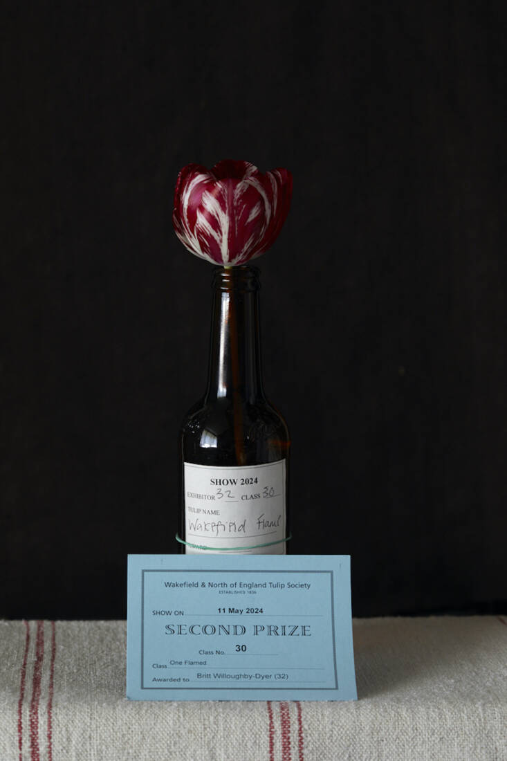 “With the English Florists’ tulips I’m much more meticulous, keeping every single one separate,” says Britt. “My feeling is that they’re so rare, I can’t muck this up.” Money does not change hands when they are distributed among members of the venerable Wakefield and North of England Tulip Society; it works more like a lottery. “If you’re showing at the Tulip Society, they encourage you to grow more because they want more people to enter. It’s a bit like showing a dog at Crufts.”