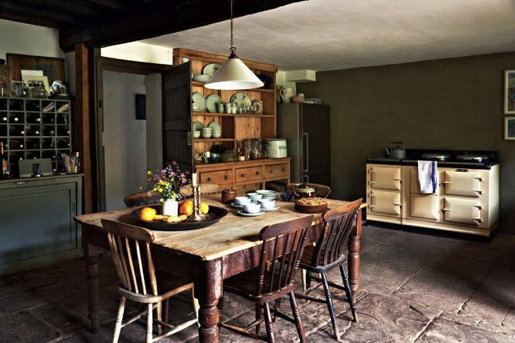Above: The kitchen with its traditional Aga stove and flagstone floor.