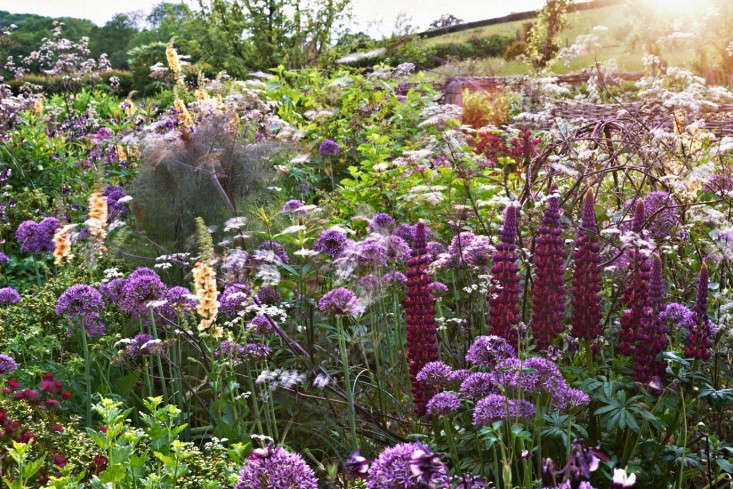 Above: A look at Arne’s signature palette of purples and plums. Lupin, allium, and bronze fennel with spikes of verbascum blow in the breezes.