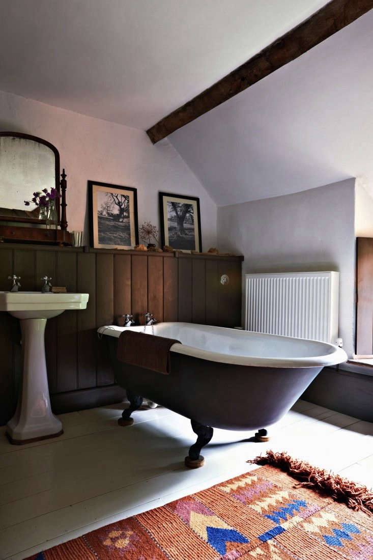 Above: One of the bed-and-breakfast bathrooms painted in Arne’s preferred shade of mulberry brown.