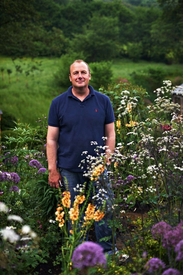 Above: The designer Arne Maynard looking proud in his perennial gardens.