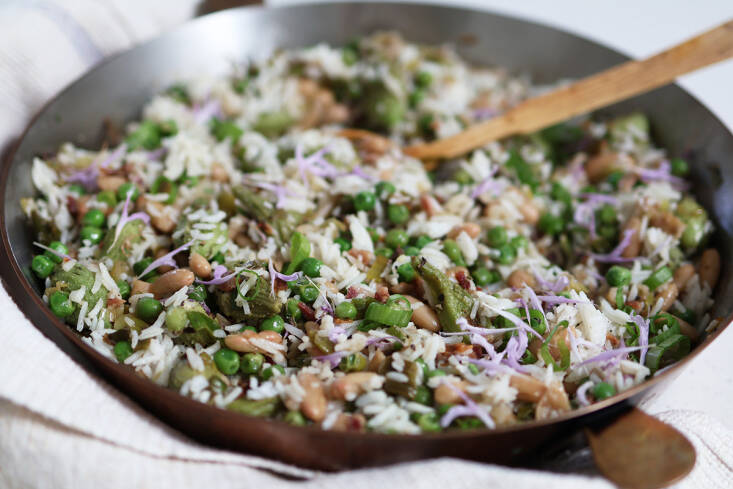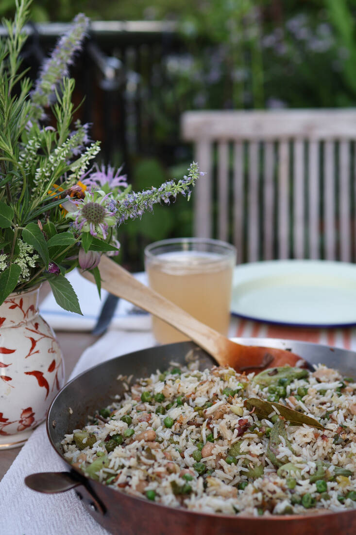 Every summer, I make an evolving version of dirty rice. In our house this one-dish wonder, with roots in Southern Creole cooking, always features a flavorful staple of my feral kitchen: dried daylilies. This is a culinary cross-reference of sorts: The Southern dish of reimagined and repurposed rice is adjacent to refried rice, whose East Asian association speaks to the daylilies—native to East Asia—and whose dried flowers are known as golden needle flower or golden needle vegetable in China. To make this dish in the melting pot of Brooklyn, I also draw on traditions of rice and beans, a Caribbean necessity, but eaten globally with regional specificity. These rice-based dishes are economical and flavorful, making the most of whatever vegetables or herbs are available. Their spirit of comfort and care allows cooks anywhere to improvise.