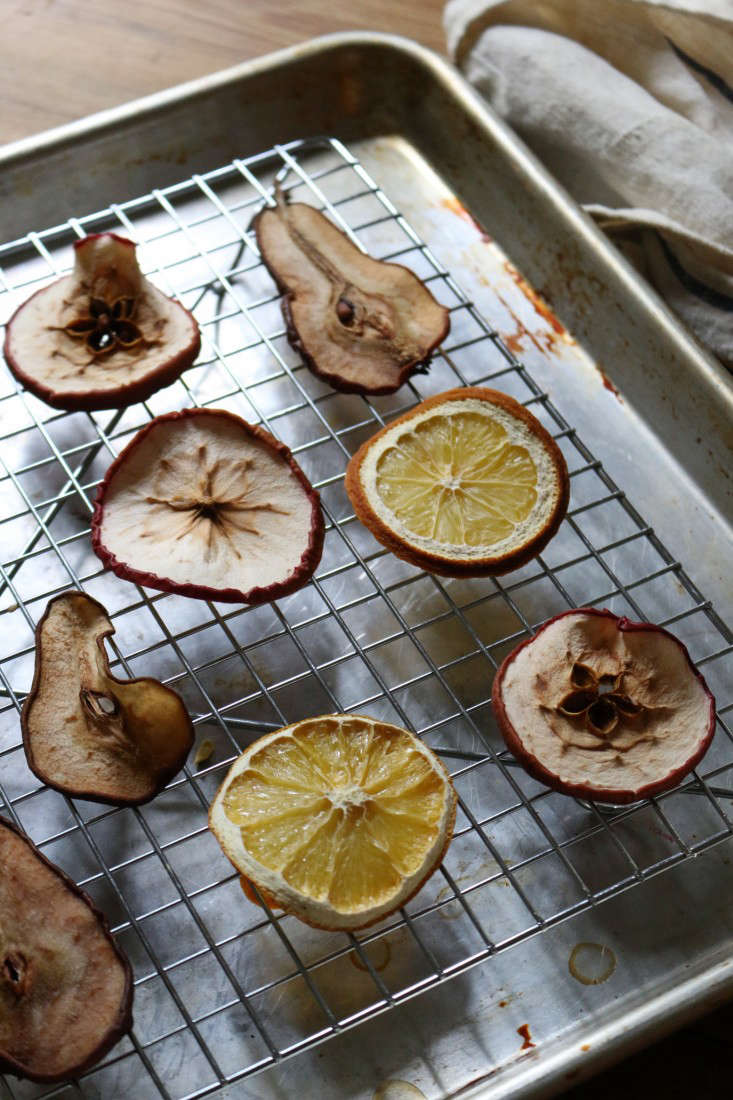 3. Place sliced fruit on a cookie rack on top of a cookie sheet.