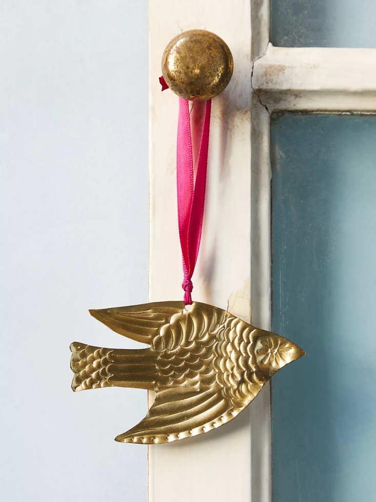Above: Made from solid brass, Fog Linen’s simple bird can be hung in a window all year long. Shop now.