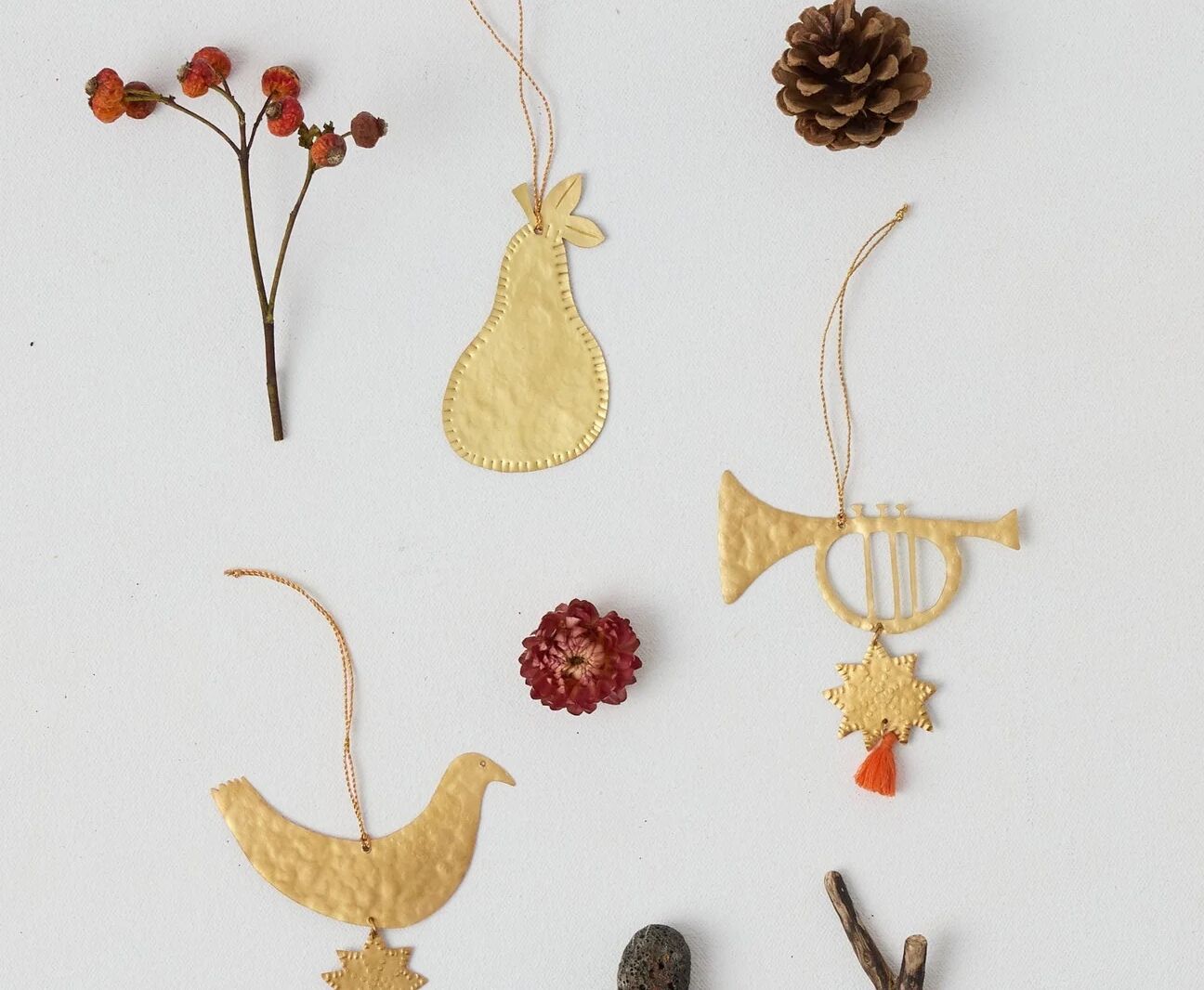 Welcome to The Editors’ Cut, our monthly column dedicated to beautiful and useful finds for all over the house. In this installment: Folded-paper stars, painted baubles, delicate blown glass designs—there’s a bevy of tiny, intricately made ornaments out there, and we’re easily wooed by them all. But this year, we noticed one common thread amongst the decor we’re admiring lately: flora, fauna, fish, and fruits, immortalized in shiny brass and pressed tin. Have a look. — The R/G Editors