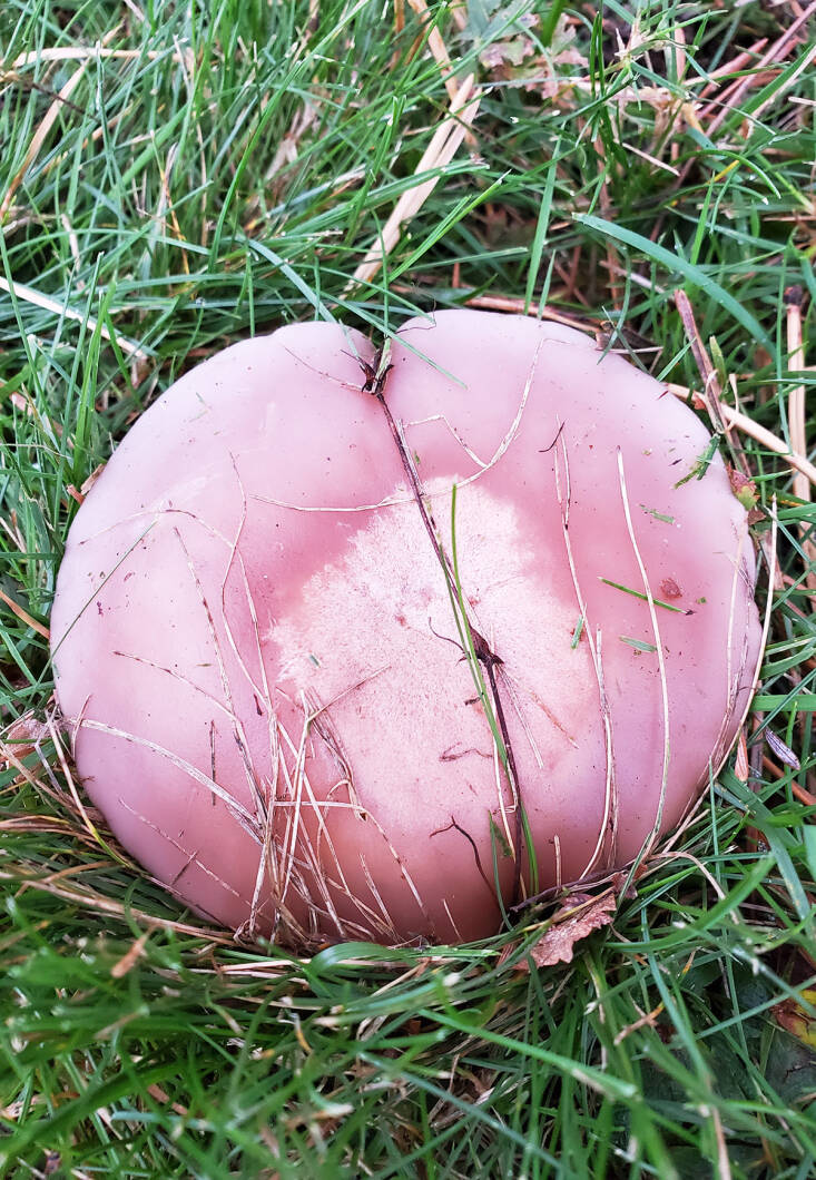 The caps of blewits have a distinctive texture (touch can be an important sense when identifying mushrooms). When dry, the cap feels like soft, springy suede; imagine the upholstery on a plush, miniature, very expensive couch (shrink yourself to fairy size and bounce).