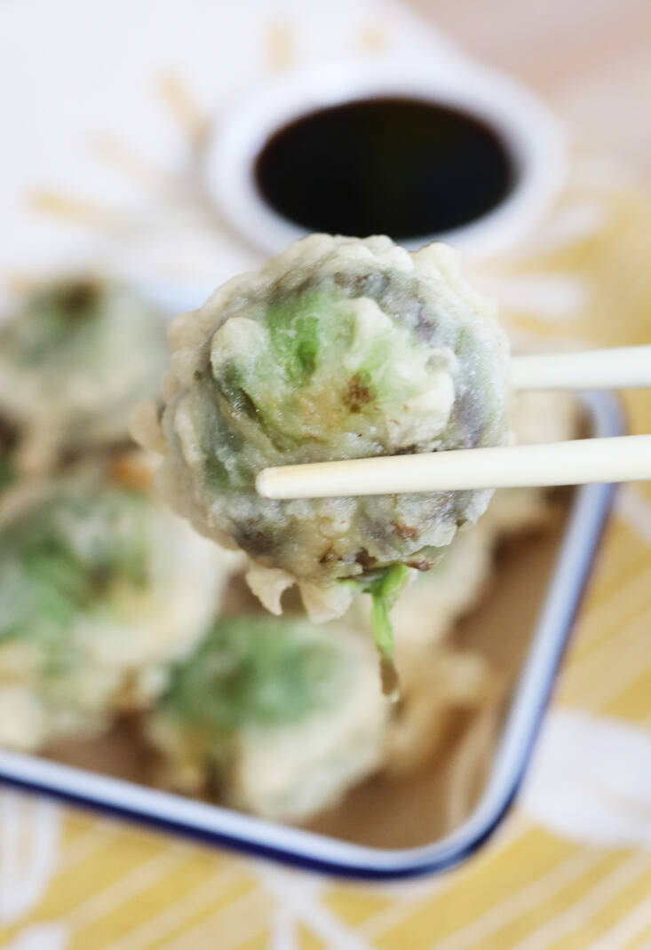 Once the fuki buds have boiled until they are tender, I plunge them into a large bowl of cold water to sit for five minutes. I then wrap them in a clean kitchen towel and press to remove residual moisture. At this stage their flavor is very aromatic and reminiscent of the smell of crushed chrysanthemum flowers or cooked chrysanthemum greens (another East Asian vegetable). There is a trace bitterness—more a mineral sense of earthiness. (I am told that P. frigidus is less bitter.)