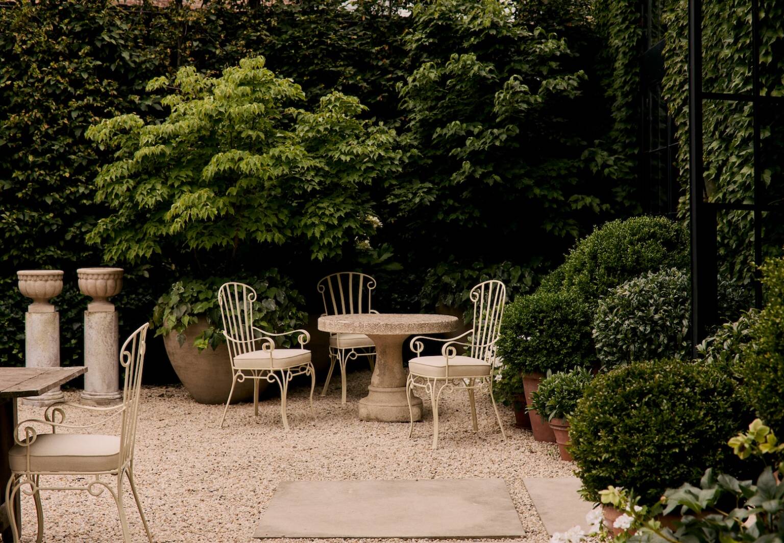 The Harrisons now stand ready to furnish and accessorize outdoor spaces: Galerie Green, their new online-only emporium, presents hard-to-find antique and vintage garden elements, from 1920s carved wooden mushrooms to carefully refinished French sunburst chairs. Their offerings, they say, are about “craftsmanship, proportion, and patina” and the case for “longevity and authenticity over the new and disposable.” Caveat: this is a weighty collection in every sense of the word and prices are steep. Join us for a look at the initial offerings presented in Harrison Green’s own Brooklyn studio garden.