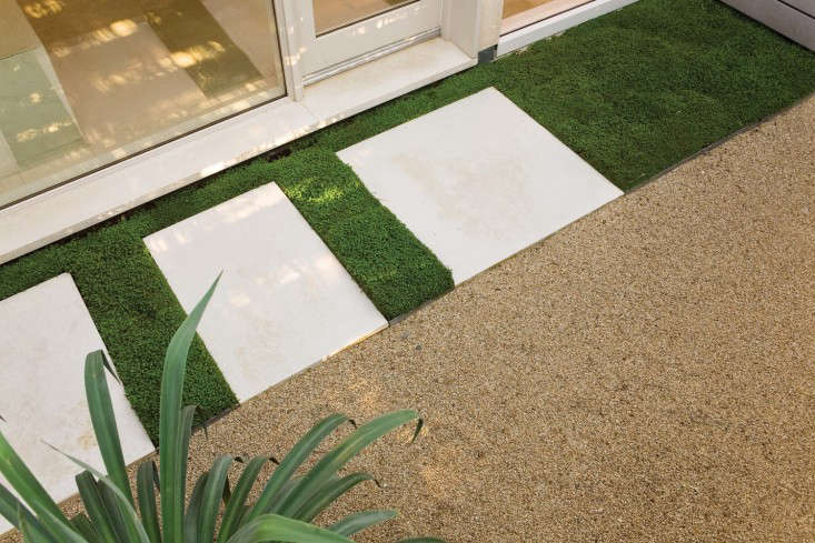 Above: To create a similar carpet-like effect between large paving stones, you can plant moss or baby’s tears or a springy, low-growing thyme.