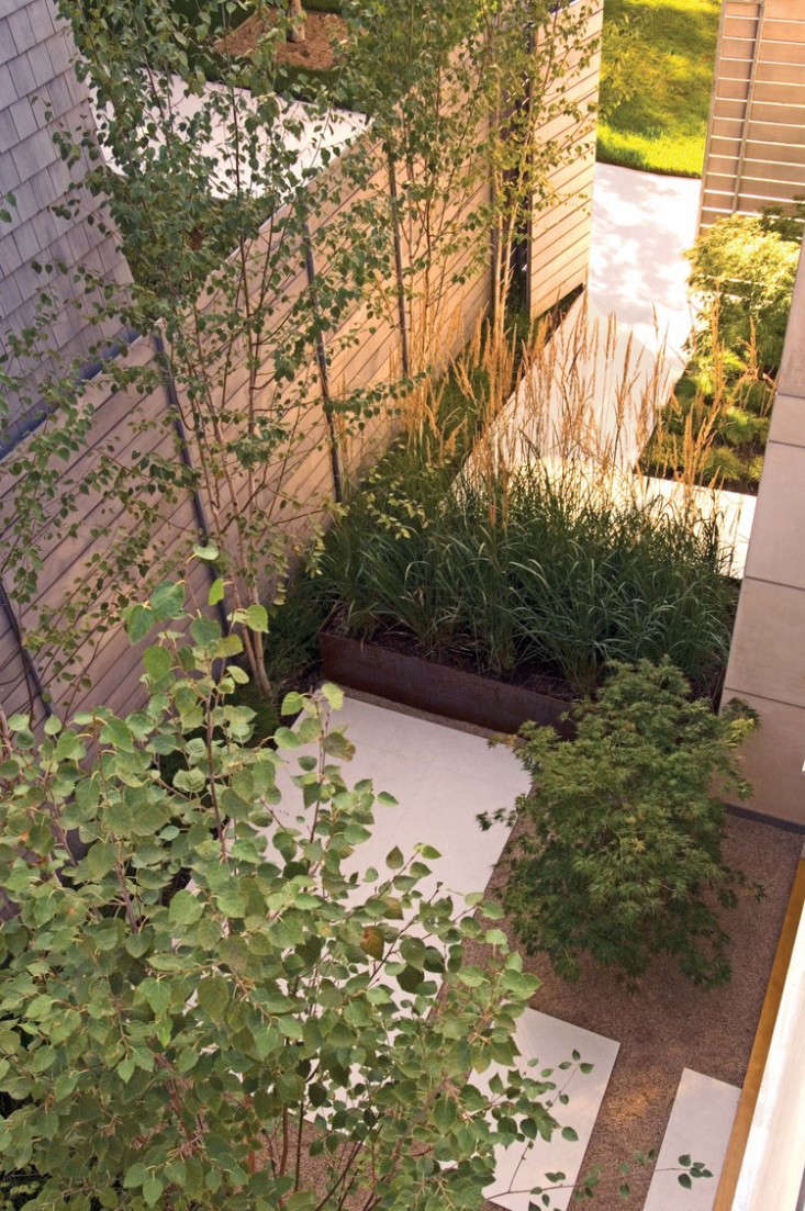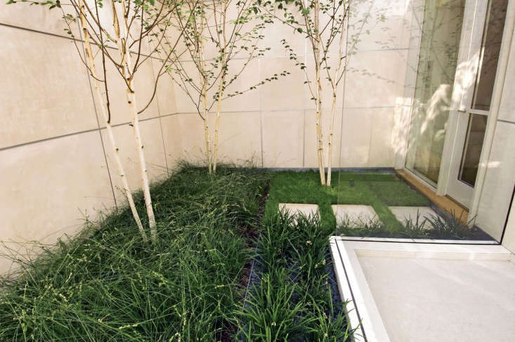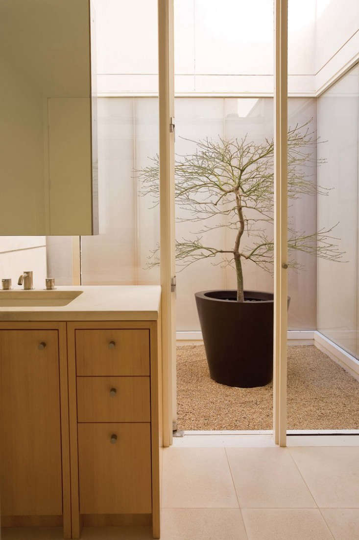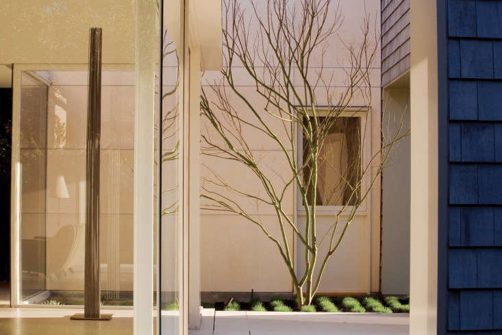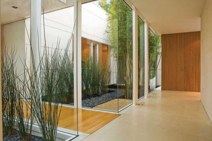 In Northern California, a modern house with multiple courtyards affords green views year-round. To take advantage of the full-height, pane-free windows, SF-based landscape architect Andrea Cochran (a member of the Remodelista + Gardenista Architect/Designer Directory) created garden vignettes on the other side of the glass: