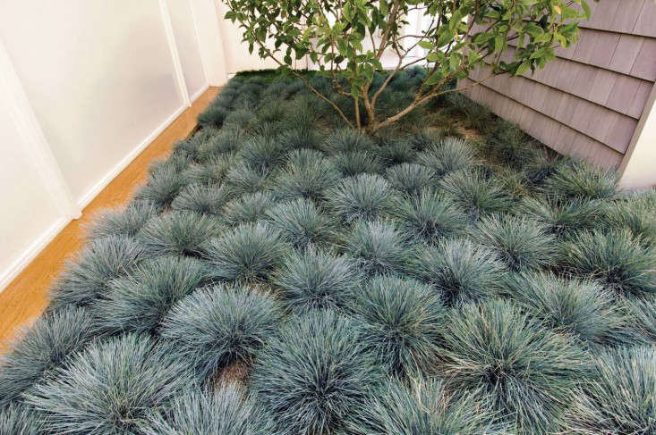 Above: Low-growing grasses planted en masse like a bedding plant, create a gray-green blanket against which other, brighter colored leaves pop.
