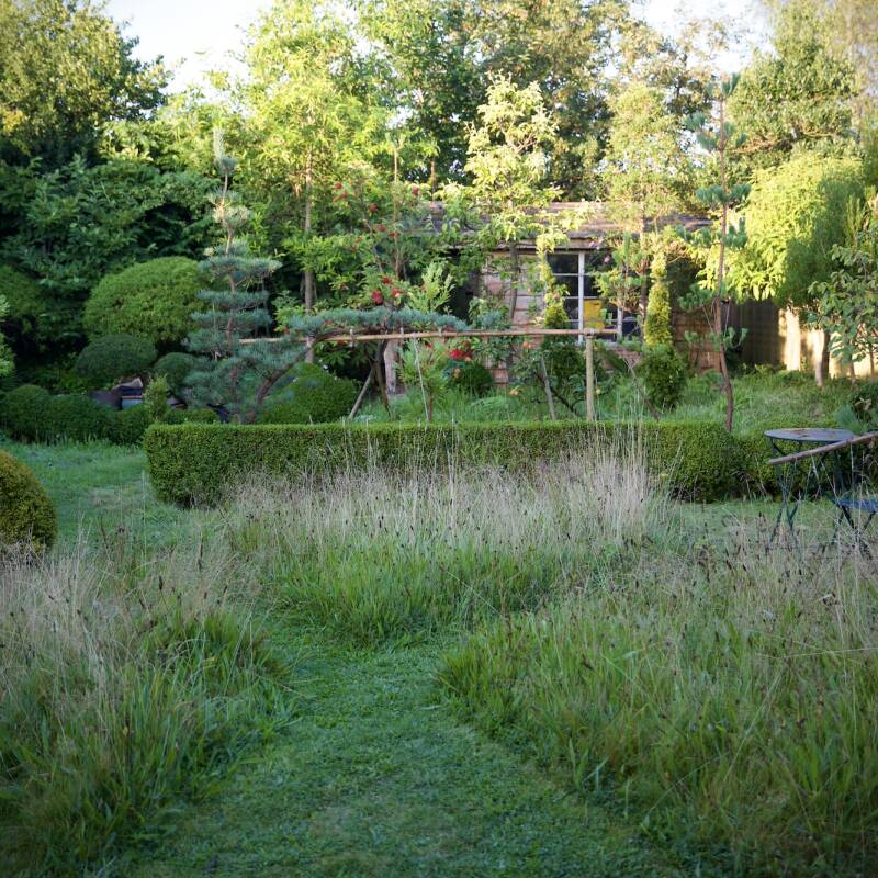 When the clients approached Pine House, their front yard consisted of patchy lawn, a pair of tired deciduous magnolias, and not much else. They wanted a garden that could produce food, cut flowers, and act as a gathering space, a tall order for such a modest space. The couple also had differing aesthetic visions. “The wife was really drawn to minimalism, clean geometry, and the husband was more into just wild nature,” landscape architect Holly Kuljian, a principal at Pinehouse, recalls.