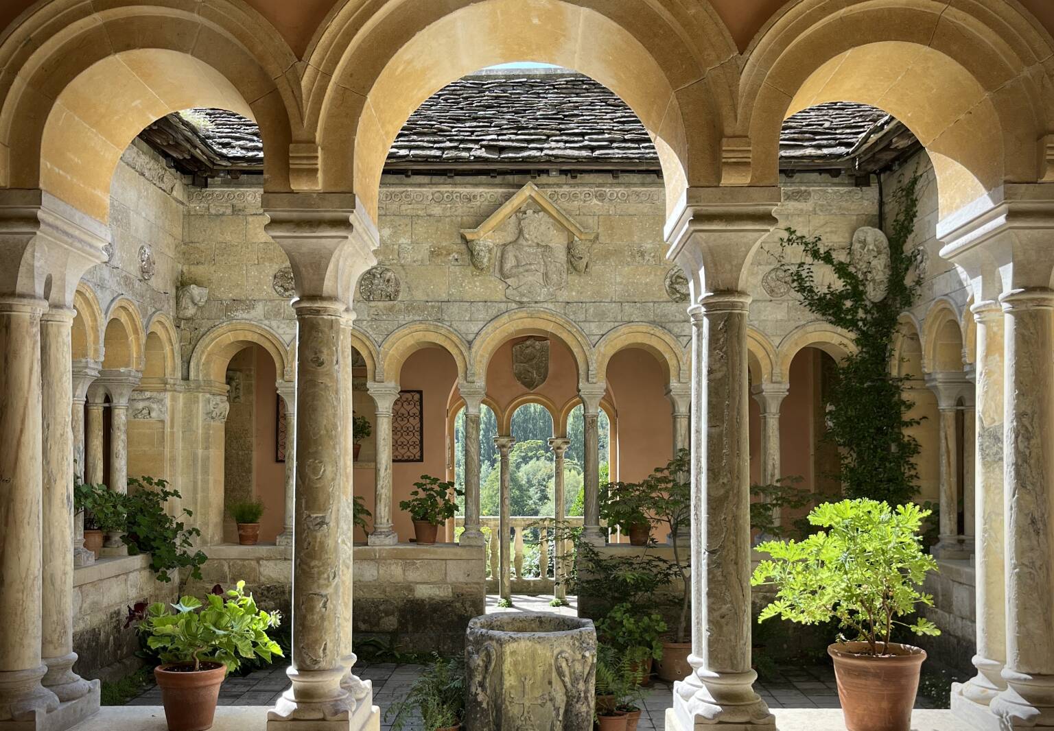 Location is everything—and Iford Manor’s is spectacular. Although “challenging” might be the way some describe it. Accessible only via two narrow, twisting lanes which meet on a medieval stone bridge that crosses the River Frome, the property sits on a slope in a wooded valley on the cusp of Somerset and Wiltshire. The steep slope means that the garden has been cut into the hillside in a series of terraces and walks, many of which are designed to offer tantalizing views out to the bucolic landscape.