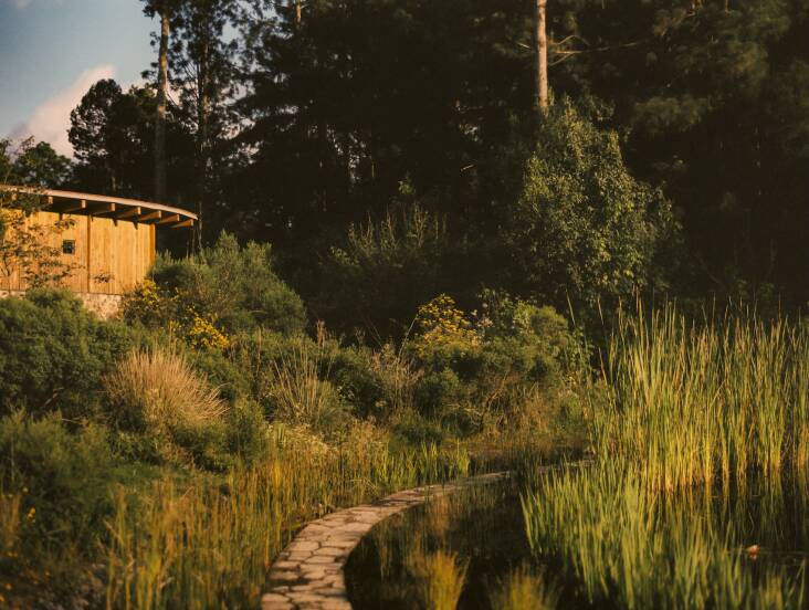 Situated on an ecological reserve 100 miles from Mexico City, The Ruins was designed with water and stone to look as ancient as Moray, and to be just as functional. In the rainy season, the round pool garden fills up, acting as a cistern for the rural collective based there. As it drains, lower water gardens are revealed, with their own beauty. It can be used for swimming at every stage; the lowest one just involves a bit more climbing. “Like ripples, the lake features circular paths that slowly emerge during the dry season,” says Estudio Ome. They wanted to examine how good a landscape could look, post-evaporation.