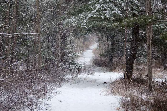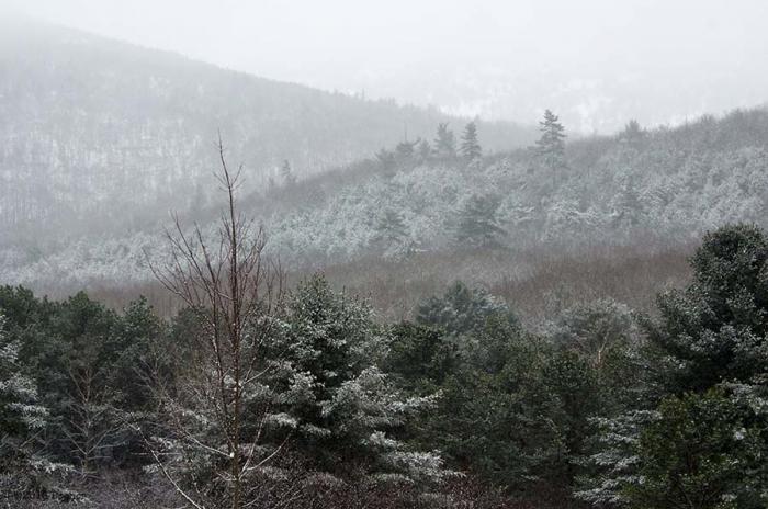 Above: A Remodelista favorite, photographer Jennifer Steen Booher of Quercus Design has been capturing images of Bar Harbor Maine for years. Here the hemlock trail is particularly stunning seen through a veil of snow flakes.