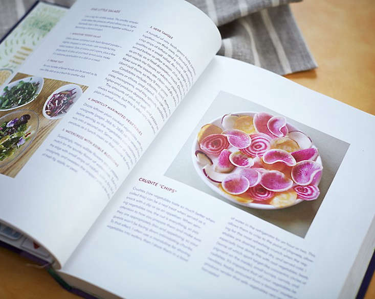 Above: In Katzen’s latest book, The Heart of the Plate: Vegetarian Recipes for a New Generation ($23.48 from Amazon), she includes a recipe for making Crudité Chips: Use a mandoline to thinly slice radishes and raw rutabagas into thin slices. Refrigerate them in a bowl of water for an hour. “They curl up and get ridiculously crisp,” she said. “Delicious.”