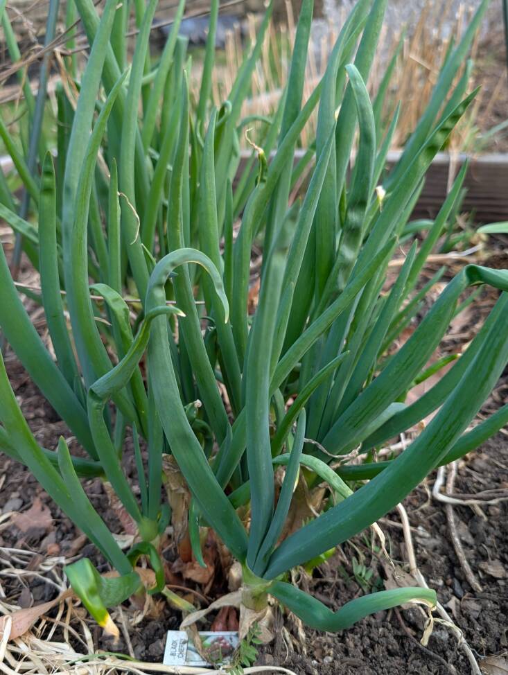 Plant it once and share it with everyone. The onions “walk” because their bulbils or topsets, the bulbs on the ends of their leaves, bend over and root in the soil. They also multiply at their bases. The leaves can be used like scallions; the bulbs and bulbils are used like onions. (Note that they tend to have a stronger flavor than supermarket onions.) Walking onions can be harvested from spring through fall.