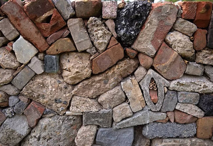 In a stony area, where limestone, slate, or granite can be found under a thin layer of soil, stones of every shape and size are pressed into service. Duncan Nuttall is a garden maker based in Bristol who teaches dry stone and dry rubble walling. With both, “a variety of niches are created, and these are perfect for many creatures, including lizards, spiders—and the nesting blue tits that we found in one of ours.” Installing a built-in gap at the bottom allows the free passage of hedgehogs (in the UK) and the free movement of other small creatures that are stumped by our mania for security fences.