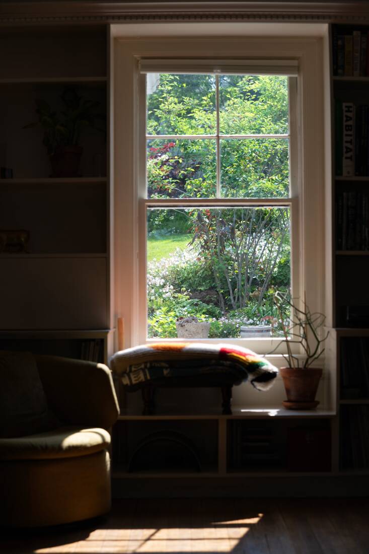 Seasonal bouquets from the garden—sometimes foliage, sometimes flowers, often with seedheads left on. I also love framing views so that the landscape itself feels like art on the other side of the glass, especially when it’s softly lit at night.
