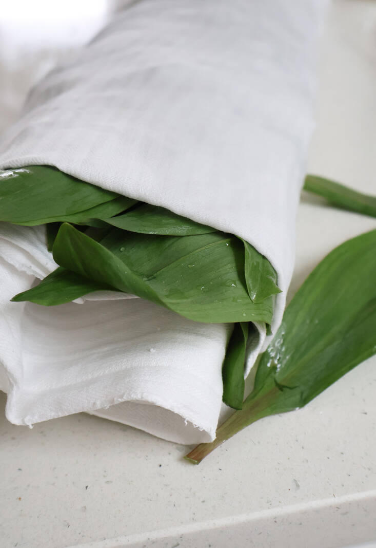 Exposed to light, ramp leaves lose condition quickly. Soak harvested or purchased leaves in a basin of water for at least an hour before patting them dry and then store them, wrapped and covered (in bags or containers) in the fridge. They will keep fresh for at least a week.