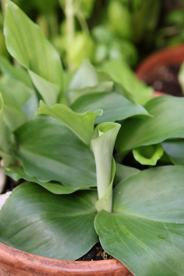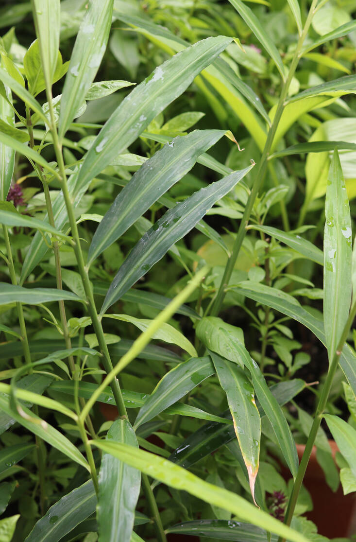 A true tropical herb native to South and Southeast Asia, galangal’s leaves resembles its ginger cousins’. In cold climates, galangal (Alpinia galanga) can be container-grown and brought indoors when nights fall below 50°F. It makes a surprisingly lush houseplant during the winter months. Once a year I divide the plants, harvest and clean half of the deeply aromatic galangal rhizomes, and freeze them in small portions to deploy in curry pastes and dressing during the year (I microplane them when needed).