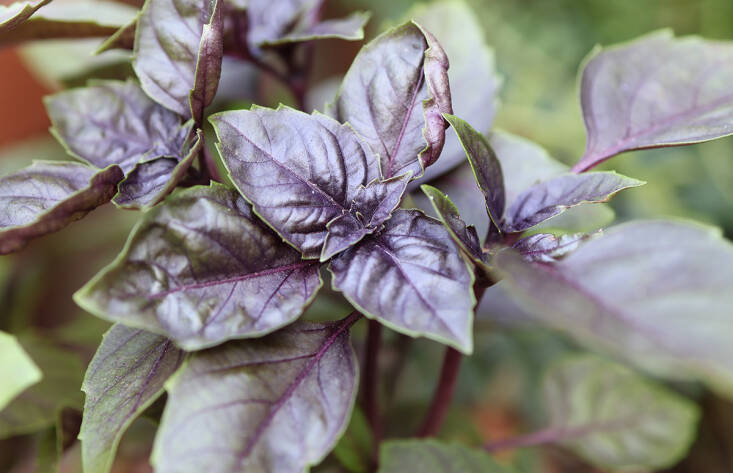 It took me years to learn that basil appreciates shade where summers are very hot. It begins to make sense when you realize that Ocimum species are native to tropical Asia and Africa, which conjures leafy forests. While basil will grow in full sun (with adequate watering), in hot summer climates it thrives in either full shade, afternoon shade, or dappled shade. The most shade-loving basils in my experience are purple, Thai, and Greek, in that order. Lemon basil also likes shade, while sweet (so-called Italian) basil will take more sun. Purple basil relishes shade, where it is as ornamental as it is delicious. During this very hot July my Thai basil planted in full sun is tall and full of flowers, but wilts twice a day, while the pot in full shade has remained more compact, is bushy with fragrant leaves, and has not bloomed yet; plus, it does not require double watering.
