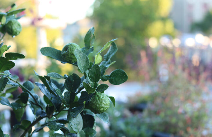 Thai lime or makrut (Citrus hystrix) is well-known for its double leaves that perfume everything from gingery salad dressings, to summer gin and tonics, to slow-cooked curries. A forest dweller in Southeast Asia, Thai lime is very comfortable in shade. In regions with cold winters the trees must overwinter indoors, which is easily done if they are container-grown.
