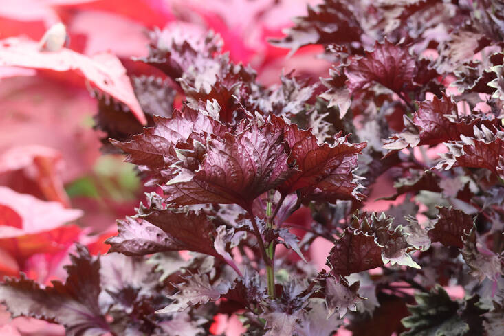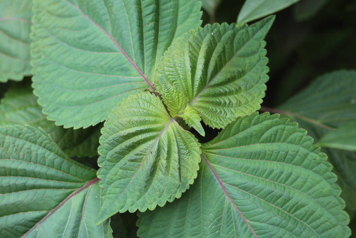 Plants’ common names—that is, their name in the lingua franca of any given region, versus the Latin and Greek binomial, or scientific name—are as interesting as they can be perplexing. Sesame leaf is not related in any way to sesame-the-crunchy-seed and source of sesame oil, although it does complement toasted sesame oil and seeds. And what about beefsteak plant? Well, the herb has red veins and does pair well with grilled beef, but that’s my take—I cannot trace that etymology reliably.