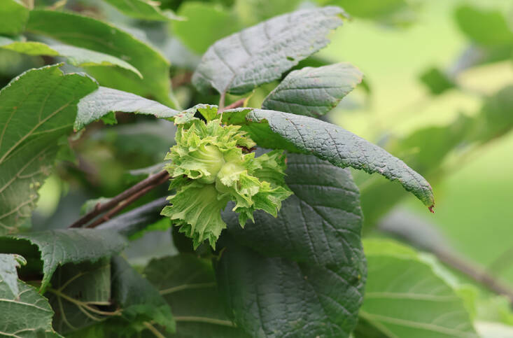 Hazelnut, filbert, cobnut—whatever you call the fruit of this large shrub, it will be yours to harvest if you plant your Corylus in semi-shade. (While hazel will grow beautifully leafy in full shade, it will bear fewer nuts.) One of the earliest shrubs to bloom in pre-spring, American hazel has slender flower structures with a tiny, burgundy male flower poised above the pendant female catkins. American hazel is hardy from USDA growing zones 4 to 9.