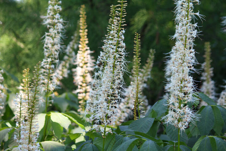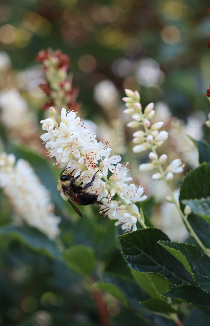 One of the loveliest shrubs for shade, the clove-scent of sweet pepperbush—Clethra alnifolia—signals the last days of summer, and the turning of the year. The native shrubs producing copious clusters of flowers that are irresistible to bees and butterflies. Clethra is hardy from USDA zones 3 to 9.