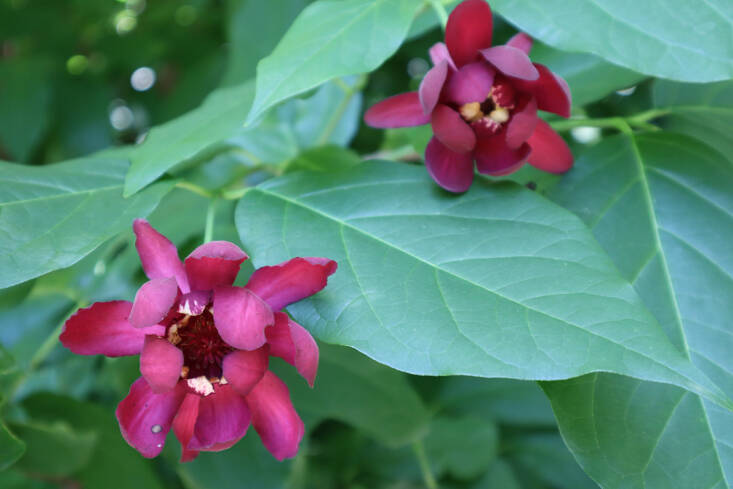 Calycanthus is a large shrub with magnolia-esque late spring and early summer flowers. They later form strikingly ornamental seed pods that persist through winter. The leaves and twigs of Carolina allspice (C. floridus) smell like strawberries when crushed—a quick and refreshing olfactory pick-me-up. Its cousin-species, C. occidentalis, is native to the West Coast and smells more like camphor. (A white form is East Asian, C. chinensis.) Calycanthus floridus is hardy from USDA zones 4 to 9, while C. occidentalis is hardy from zones 6 (with protection from winter winds) to 9.