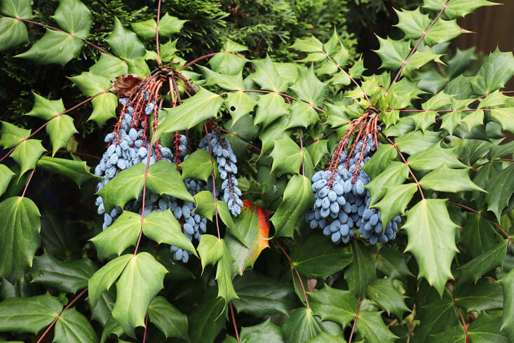 One of the best shrubs for shade because if its year-long appeal, Mahonia species have pretty yellow, sweetly scented flowers that bloom in late winter and early spring; lusciously attractive (and edible) clusters of late summer fruit; and sharply defined, evergreen leaves. Depending on the species Mahonia may be hardy from USDA zones 5 to 8, with protection from freezing winter winds.