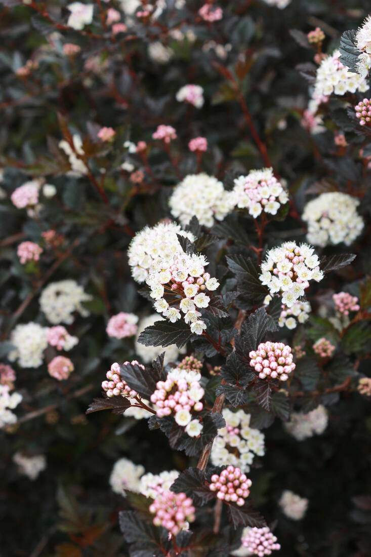 Ninebark is one of the hardiest native shrubs for shade, with arching stems that are festooned with pink buds that open into showers of white confetti in early summer. While many ninebark shrubs are green, burgundy-leafed cultivars are a spectacular garden backdrop, whether or not they are in bloom. Exceptionally cold-tolerant ninebark will grow in USDA zones 2 to 8.
