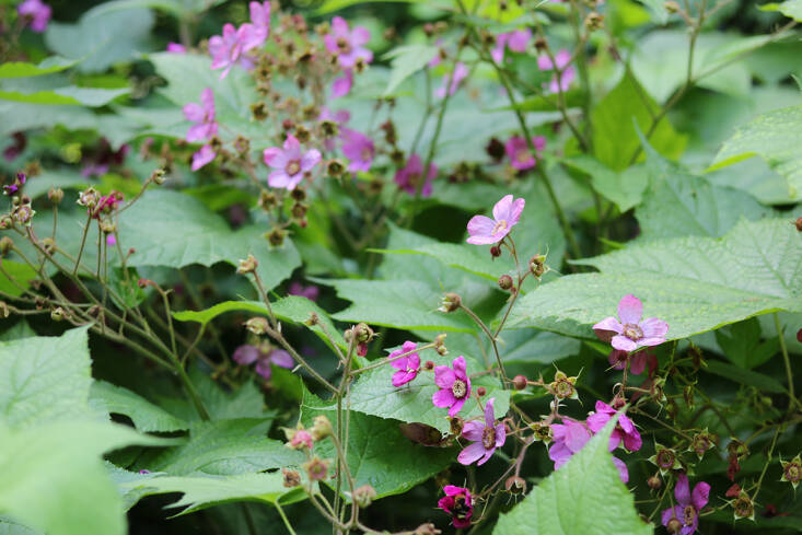 The ample, maple-leafed foliage of purple-flowering raspberry is a velvet backdrop for the shrub’s dramatic early summer flowers. The large, rose-like flowers are a pollinator favorite and are especially loved by bumblebees. In late summer the fruit, reminiscent of thimbleberries, makes an appealing snack. Purple-flowering raspberry is hardy from USDA zones 3 to 8.