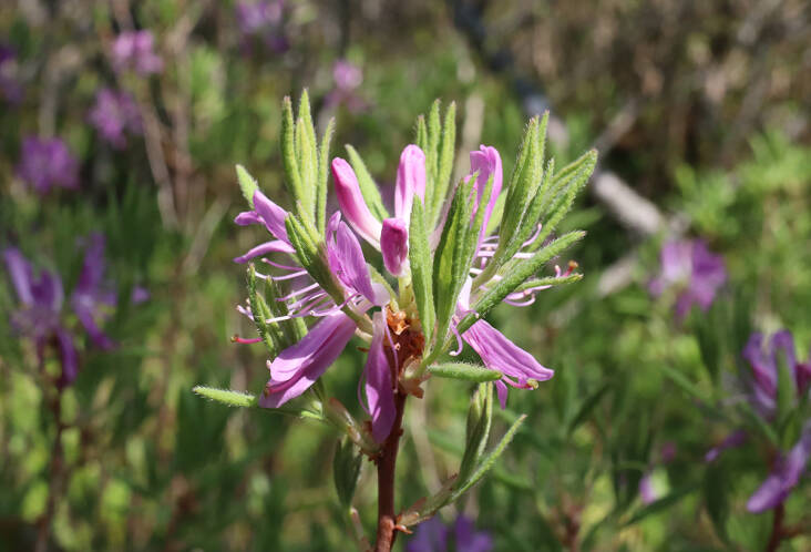 In the wild, Canada rosebay, or rhodora (which is also the family name for all rhododendrons), flourishes in moist woodlands and at the edges of swamps and bogs. Its scented blooms appear in late spring to early summer. This is a shrub that needs plenty of water, and it also requires acidic soil. Canada rosebay grows in semi-shade or under the seasonal shade of deciduous trees. It is is very cold hardy, from USDA zones 2 to 6.