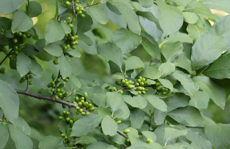 Highbush and lowbush blueberries have three seasons of serious interest: early spring flowers (an important food source for native bees), their famous summer fruit, and very vivid fall foliage. Blueberries require acidic soil—it’s non-negotiable—so if your garden’s in-ground soil tests near-neutral, they are better grown in containers, where you can adjust the pH more easily (personally, I use fresh—not spent—coffee grounds, mixed into the potting soil when planting.) Blueberries are hardy from USDA zones 3 (possibly 2, with protection) to 8.