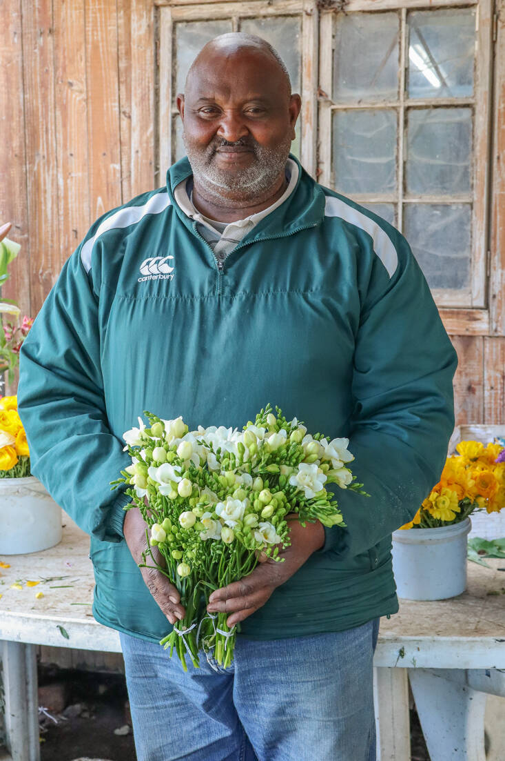 Buying flowers directly from any cut flower farm is a treat, and at Jaftha’s the same flowers cost around a third of local store-bought bouquets. For visiting Americans, there is an exchange-rate bonus: The prices are exceptionally favorable at a time when one US dollar buys around 18 South African rands. For example, at the time of writing, a R50 bouquet of vivid ranunculus is $2.65. And those flowers last up to 10 days, in fresh changes of water.