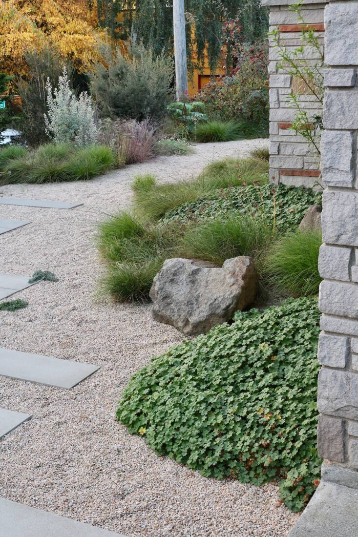 “We stuck with the desaturated greens and off-greens typical of New Zealand plants,” says Jonathan. “We were trying to make it feel more like a dry garden, which it is.” He and Jane also planted natives, and plants from the coasts of Oregon and Northern California. “The overall tough and dry plant palette helped in creating a more climate-adapted garden that will tolerate Seattle’s increasingly long, dry and hot summers, with little supplemental irrigation required.”