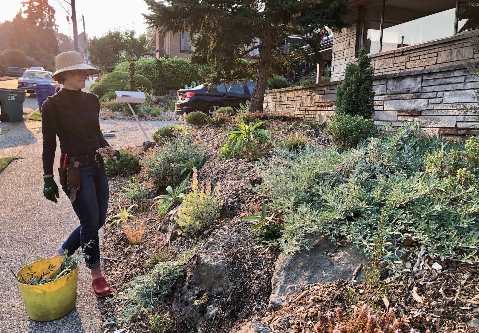 When Jane Orvis and Steve Hanson bought their 1950s house in Seward Park, Seattle, they kept the original pink-tiled bathroom. But what about the mid-century shrubbery, arranged around a lawn—did that have to stay? Most people would reply, “absolutely not,” but Jane, who is a keen gardener, wanted to take a more closed-loop approach and consulted with the landscape architect Jonathan Hallet, of Supernature. On a joint visit to the Seattle Arboretum, a trio of plants in the New Zealand garden caught their attention: a topiarist’s hebe, red tussock grass, and a shrub similar to manzanita. They had all the “lightness and air and movement” that Jane’s garden was in need of.