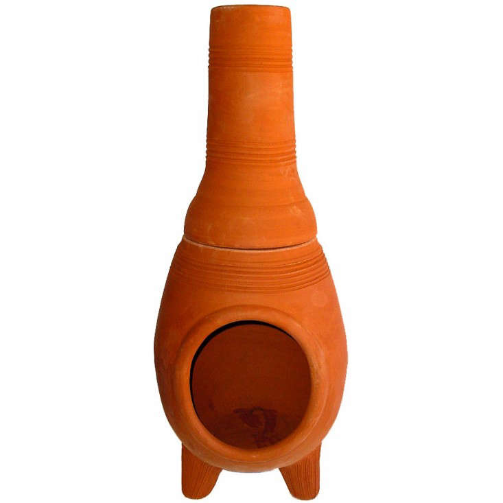 Above: A 52-inch-high Clay Chimenea that burns wood is $139 from Lowe’s.