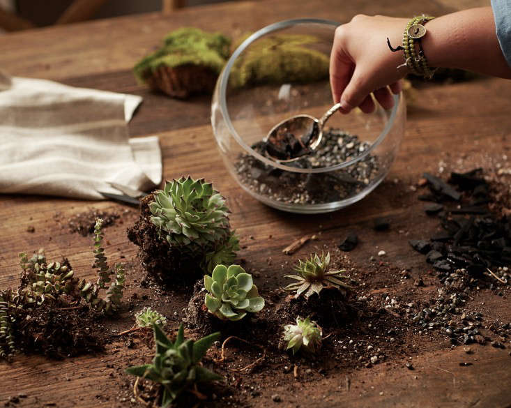 Above: If your terrarium is going to house ferns or other humidity-loving plants (instead of succulents), see Gardening 101: How to Plant a Closed Terrarium.