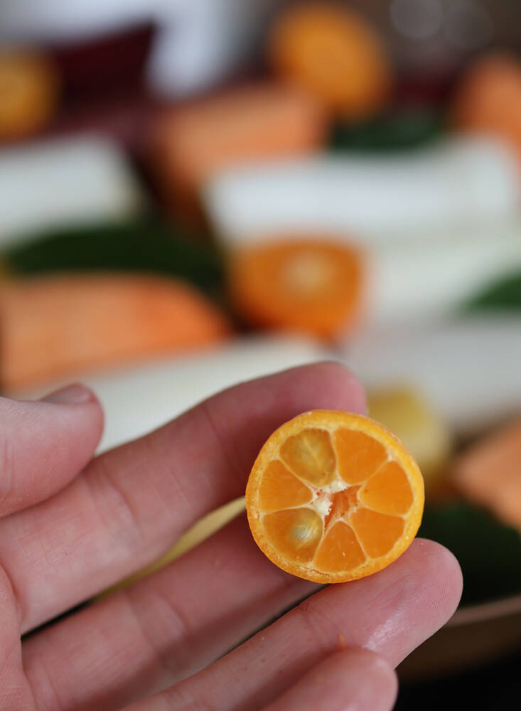 Gardeners must observe and abide by the rules of season. It is what it is. Cooks may choose to ignore them—seasonless supermarkets make strawberries and basil and green leaves possible in every month of the year. But for cooks who are also gardeners and growers there is a deeper connection—we know what grows when, and sometimes we have the ingredients at hand, for inspiration and creation. Which brings us, at winter’s end and on the fickle cusp of spring, to the union of calamansi—a small, sour citrus fruit—and root vegetables in a vegetable adobo.