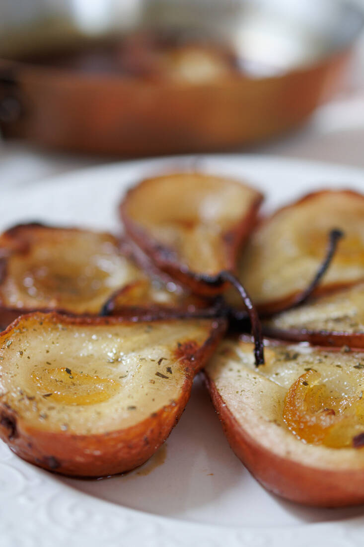 Roasted pears are a warming and very easy winter dessert. The magic lies in the choice of seasoning for the fruit. Perfuming the pears with the comforting aroma of fir sugar will fill your kitchen—as well as your heart—with a sense of unexpected optimism.